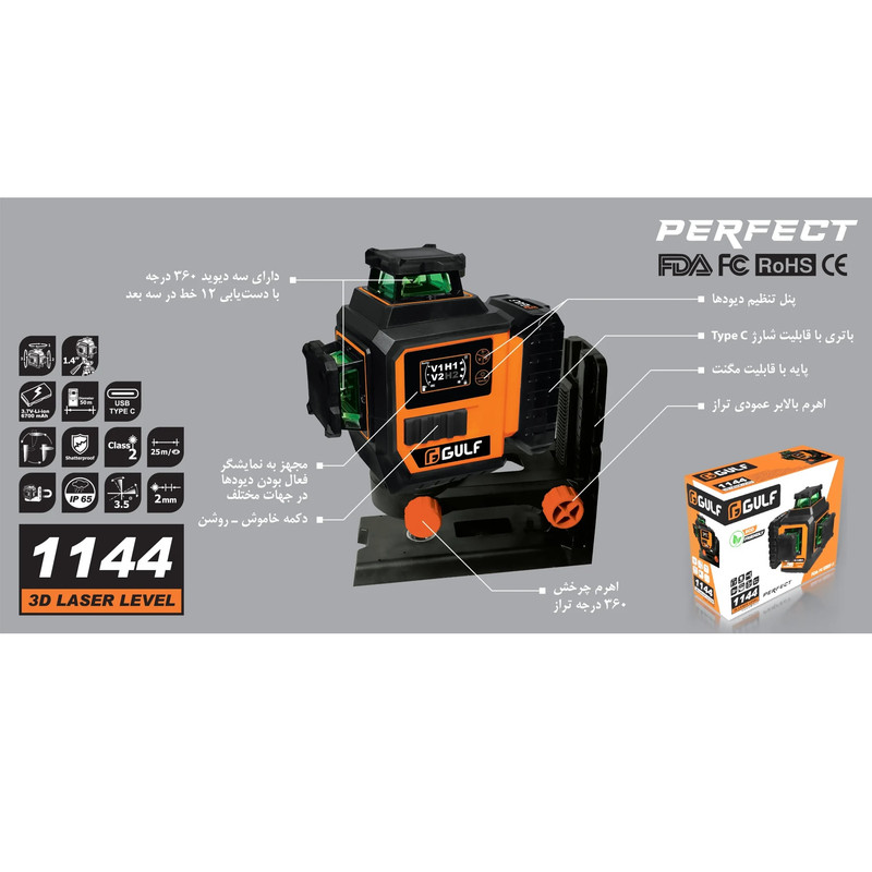 باتری , دارای سیستم تراز خودکار , قابلیت خاموش شدن خودکار , قابلیت نصب روی پایه , قابلیت نمایش خط , قابلیت نمایش نقطه , قفل تراز , نمایش خط لیزر افقی , نمایش خط لیزر عمودی