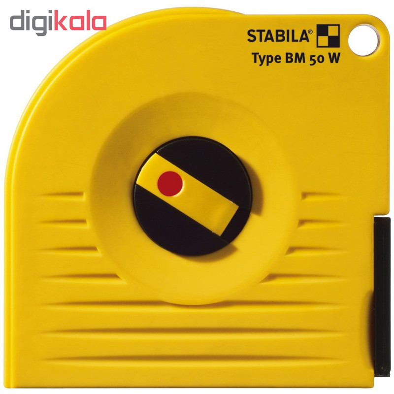 متر فلزی 30 متری STABILA BM 50 W از جمله مترهای مهندسی و دقیق محسوب میشود که شرکت آلمانی «استبیلا»(STABILA) این محصول را تولید میکند . این متر داری دسته ای از جنس فلز و پلاستیک می باشد که با فشار دادن دکمه پشتی متر از محل خود بیرون آمده و برای جمع شدن متر ایده آل می باشد. این متر برای اندازهگیری طولهای نسبتا زیاد بهکار میرود. این محصول قابلیت اندازهگیری متراژهای طولانی را دارد و به کمک آن میتوانید تا 30 متر را اندازهگیری کنید. بر خلاف ظاهر این متر که شباهت بسیاری به مترهای پارچهای دارد، این محصول دارای نوار فلزی به رنگ سفید و وضوح بالا است. در نظر داشته باشید با توجه به جنس فلزی نوار، نباید آن را بیش از اندازه خم کنید. خم شدن نوار باعث شکسته شدن آن خواهد شد.هر زمان که استفادهی کاربر از متر تمام شد، به کمک دستگیرهی متر میتواند درزمان کوتاهی نوار متر را جمع کند. این نوع متر در کارگاههای عمرانی و ساختمانی کاربرد فراوانی دارد. همچنین از این ابزار برای تخمین طول کابل مورد نیاز جهت نصب تجهیزات الکتریکی هم استفاده میکنند.