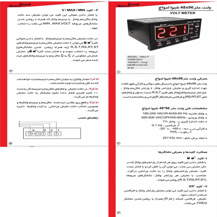ولتاز تغذیه ۱۸۰-۲۵۰ ولتاژ متناوب،فاز و نول، ۶۰-۵۰ هرتز ولتاژ ورودی ۳۰۰-۵۰۰ولتاژ متناوب،۳فاز،۵۰-۶۰هرتز دقت اندازه گیری فرکانس:۰.۱هرتز, ولتاژ:۱ ولت کارایی در دما: ۶۵+..۲۰– و رطوبت : ۷۰درصد