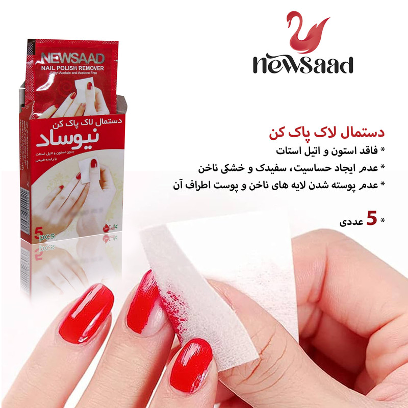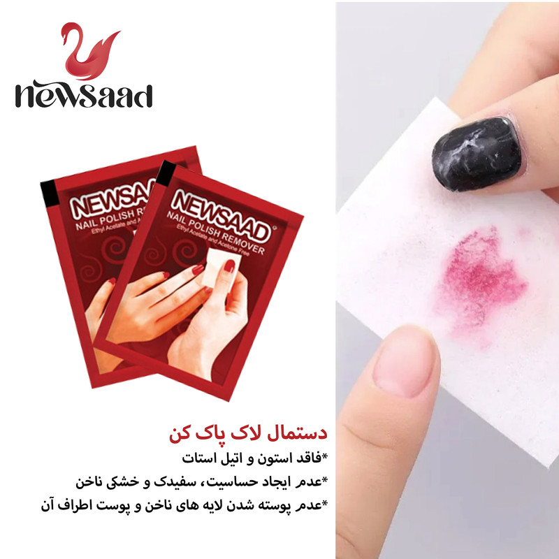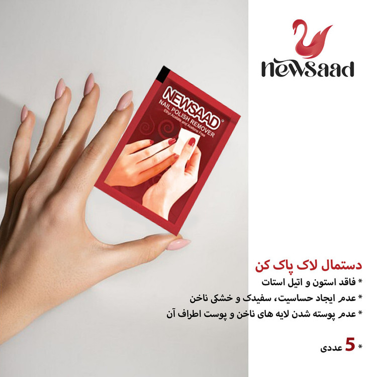 روش استفاده: برای استفاده از دستمالهای لاک پاککن نیوساد، کافی است یک دستمال را برداشته و به آرامی روی ناخن خود بکشید. این کار را تا زمانی که لاک به طور کامل پاک شود، تکرار کنید. در صورت نیاز میتوانید از یک دستمال جدید استفاده کنید.