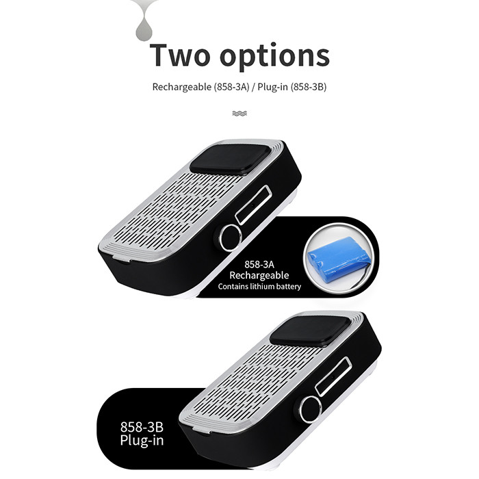 نام دستگاه: فن زیر دست ناخن / گردگیر ناخن / فن مکنده ناخن برند : بلوکیو / Blueque مدل: BQ858-3 منبع تغذیه: باطری قابل شارژ ولتاژ: 100 – 240 ولت گواهی کیفیت کالا: CE توان نامی: 80 وات دور فن در دقیقه: 0-4500 دور در دقیقه جنس: پلاستیکABS سایز: 27.5x18.7x7.8