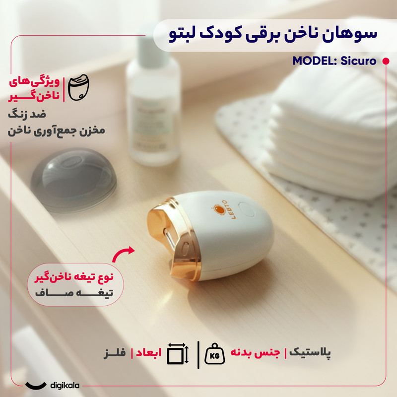 جنس بدنهپلاستیکجنس تیغهفلزنوع ناخنگیرناخنگیر کودکنوع تیغه ناخنگیرتیغه صافویژگیهای ناخنگیرضد زنگ , مخزن جمعآوری ناخنسایز ناخنگیرمتوسط (سایز استاندارد خانگی)رنگسفید