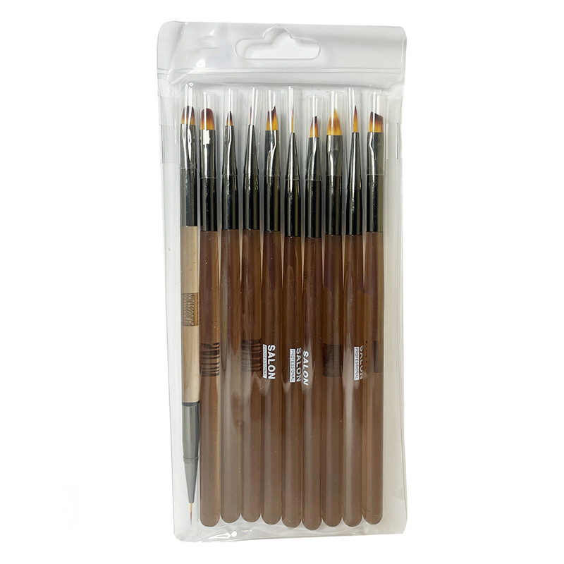 این مجموعه شامل: سه عدد قلم موی لاینر (سوزنی) دو عدد قلم موی سر کج (تیغی) دو عدد قلم موی تخت مو کوتاه (صاف) دو عدد قلم موی سر گرد (مدادی) یک عدد قلم موی زبان گربه ای (انگشتی)