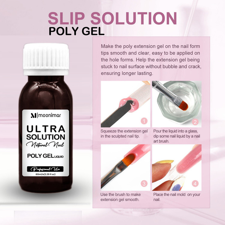 مخصوص استفاده از پلی ژل و ژل های دیزاین ناخن برای جلوگیری از چسبیدن ژل به قلم، این محلول کاملا بی رنگ و دارای رایحه میباشد.