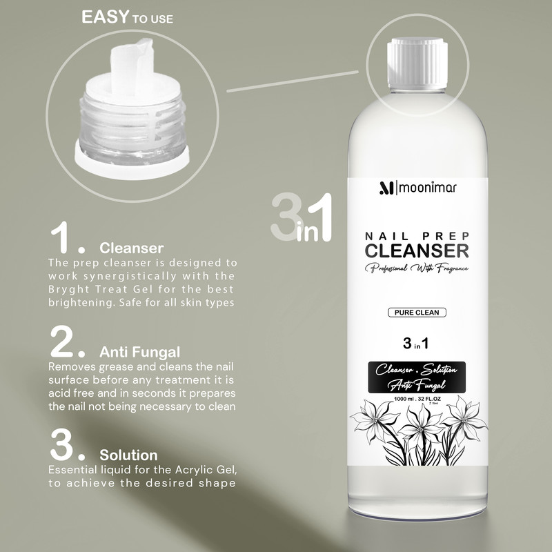 کلینزر کاشت ناخن مونیمار مدل سه کاره حجم 1000 میلی لیتر