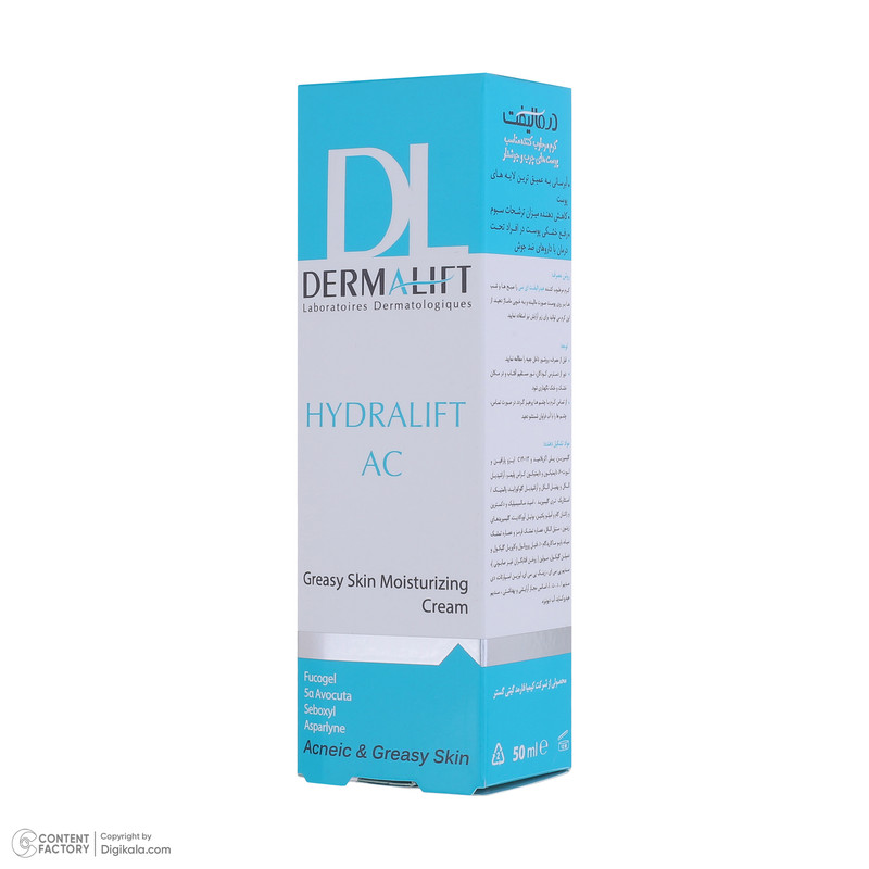 کرم مرطوبکننده درمالیفت مدل Hydralift AC Cream مناسب پوستهای چرب حجم 50 میلیلیتر