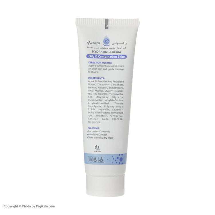 راهنمای استفاده : مقدار کافی از آبرسان راکوتن را روی پوست تمیز به آرامی ماساژ دهید تا جذب گردد.
