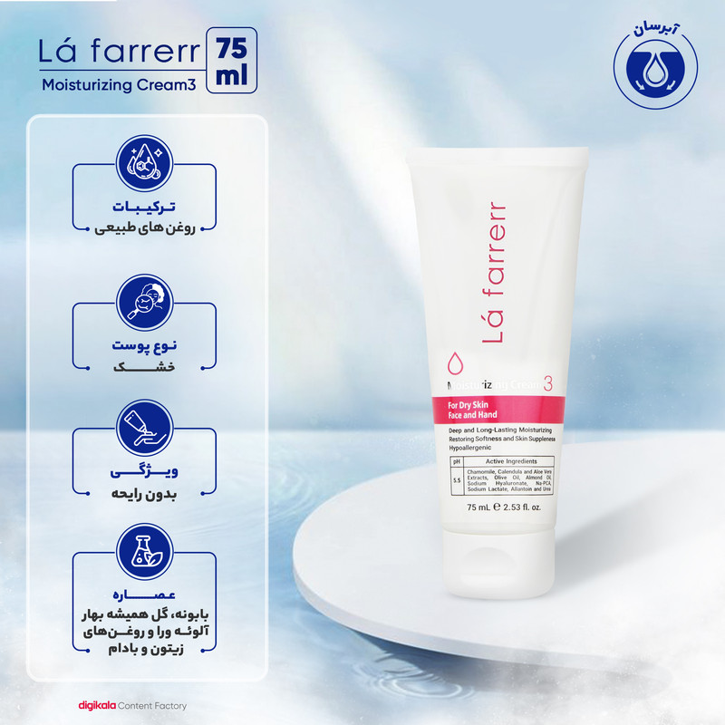 کرم مرطوبکننده و آبرسان دست و صورت لافارر مدل 03 مناسب پوستهای خشک حجم 75 میلیلیتر