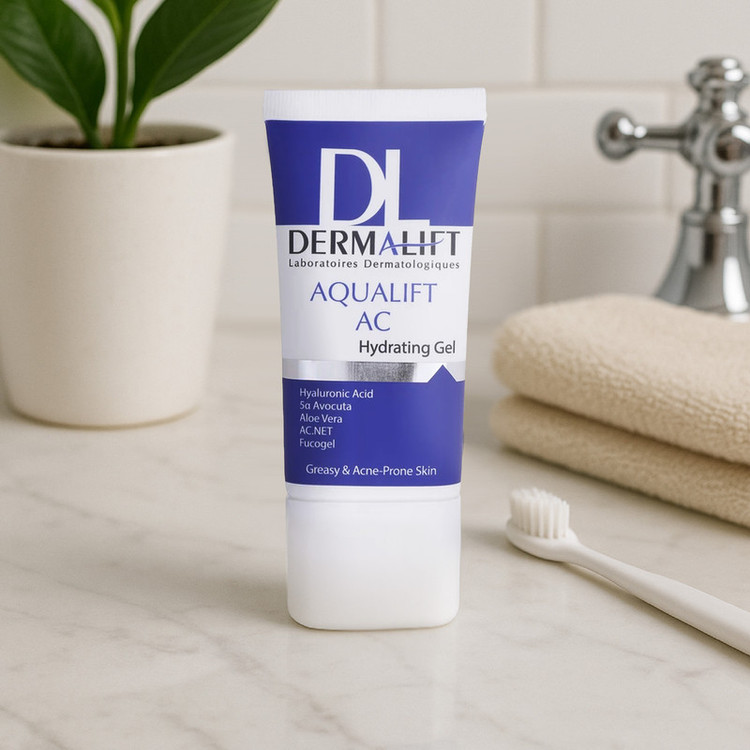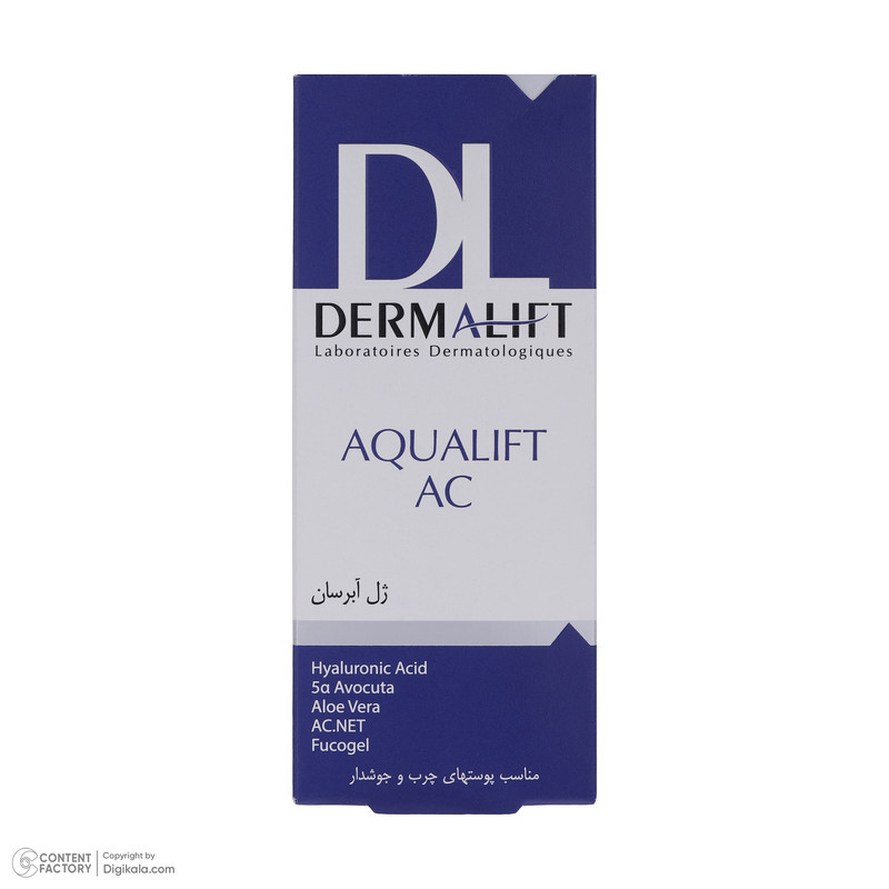ژل آبرسان صورت درمالیفت مدل AQUALIFT AC مناسب برای پوستهای چرب و جوشدار حجم 50 میلی لیتر