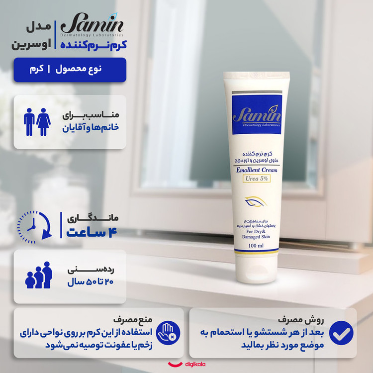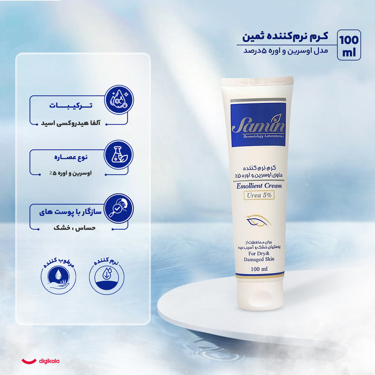 کرم نرمکننده ثمین مدل اوسرین و اوره حجم 100 میلیلیتر