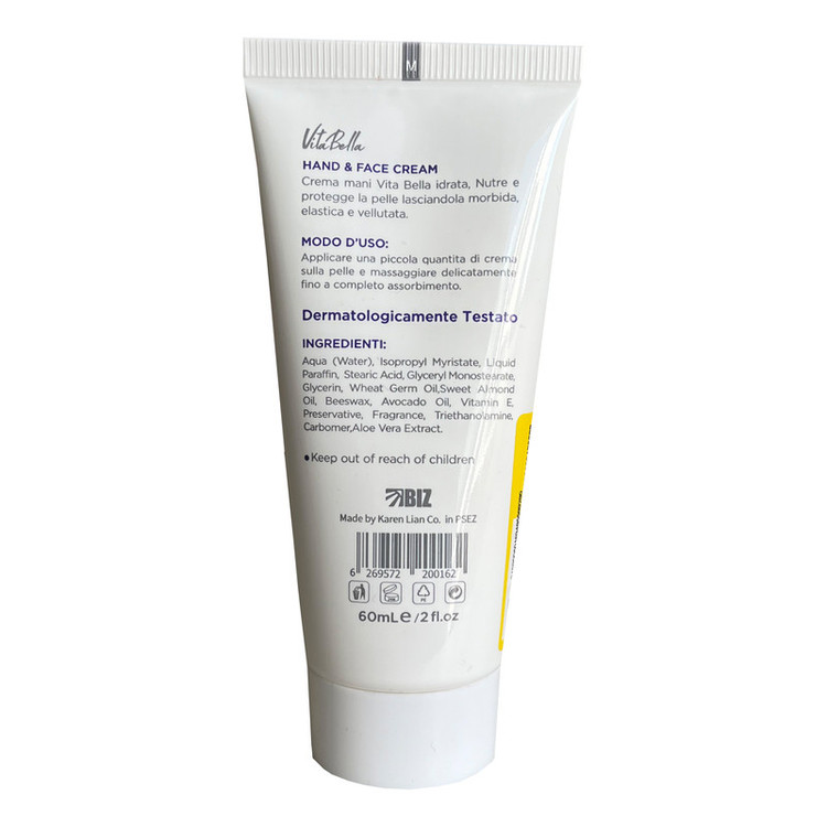 کرم دست و صورت ویتابلا حاوی روغن جوانه گندم ، روغن بادام شیرین ، موم زنبور عسل ، روغن آووکادو ، ویتامین E ، عصاره آلوئه ورا برای پوست های معمولی و خشک