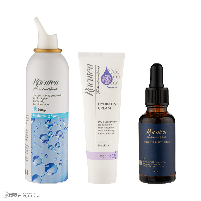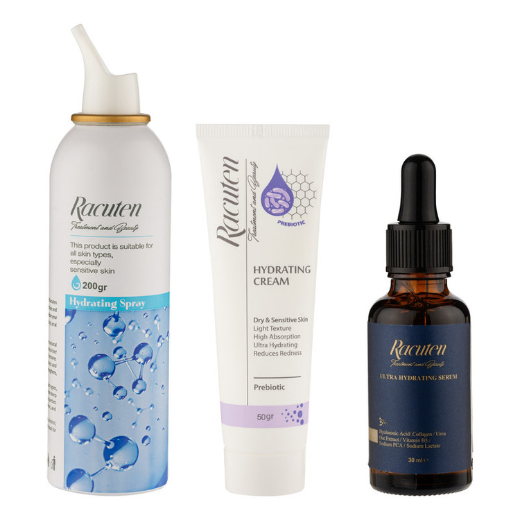 کرم آبرسان پوست چرب وزن ۵۰ گرم، اسپری آبرسان وزن ۲۰۰ گرم و سرم آبرسان حجم ۳۰ میلی لیتر