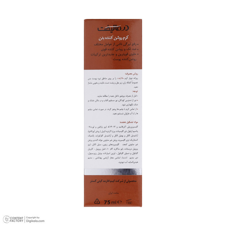 - برطرف کننده لک های مقاوم نواحی کشاله ران، زیر بغل و پشت دست ها - رفع کننده تیرگی های ناشی از عوامل مختلف - حاوی قویترین و جدید ترین ترکیبات روشن کننده پوست - محافظ شادابی و طراوت پوست