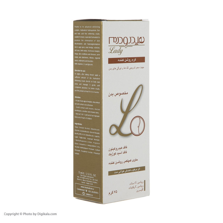 - روشن کننده و ضد لک نقاط تیره بدن مانند زانو، آرنج،کشاله ران، زیر بغل و قوزک پا - حاوی گلیسرین - روش مصرف: شب ها بر روی پوست تمیز و خشک به مدت 6 تا 8 هفته