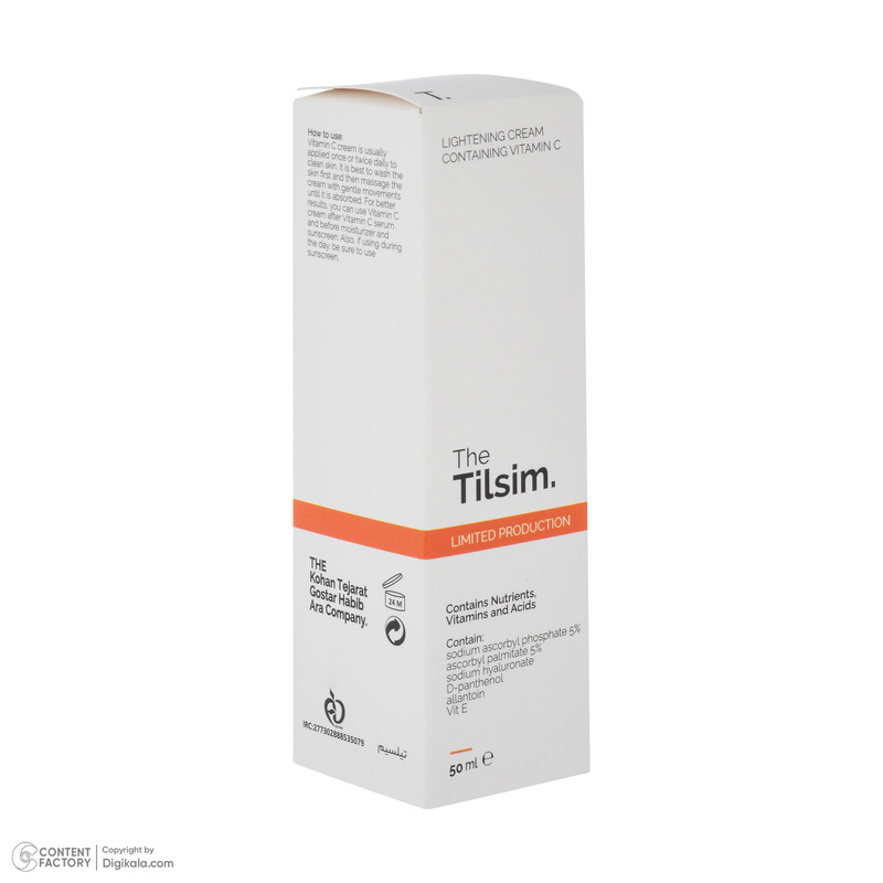 کرم روشن کننده دست و صورت تیلسیم مدل ویتامین C مناسب برای انواع پوست حجم 50 میلیلیتر