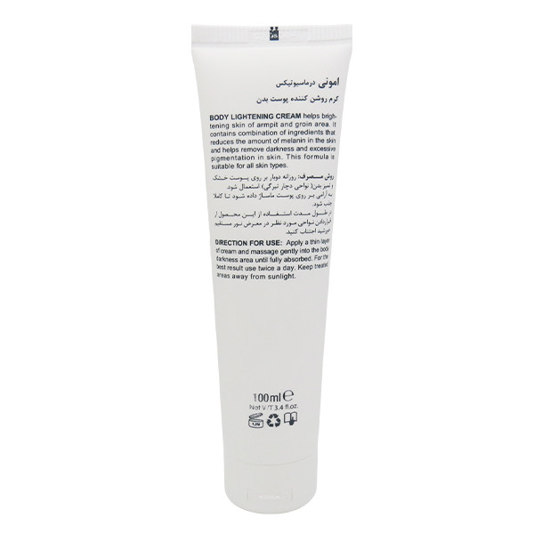 راهنمای استفاده: روزانه دو بار و پس از هر حمام بر روى پوست خشک و تمیز بدن (نواحی دچار تیرگی) استعمال شود. به آرامی روی پوست ماساژ داده تا کاملا جذب پوست شود.