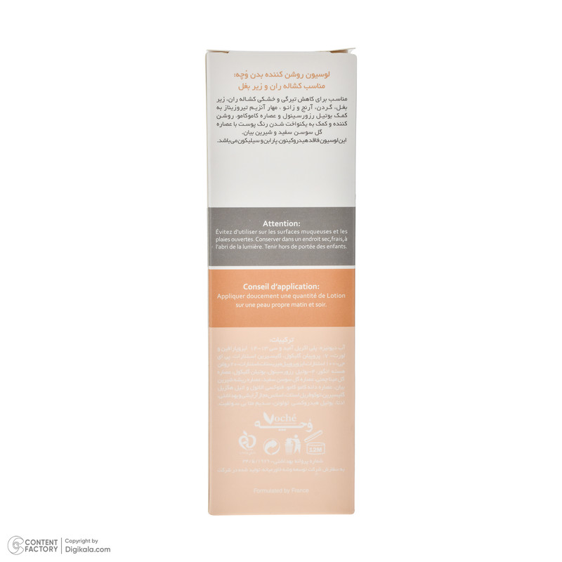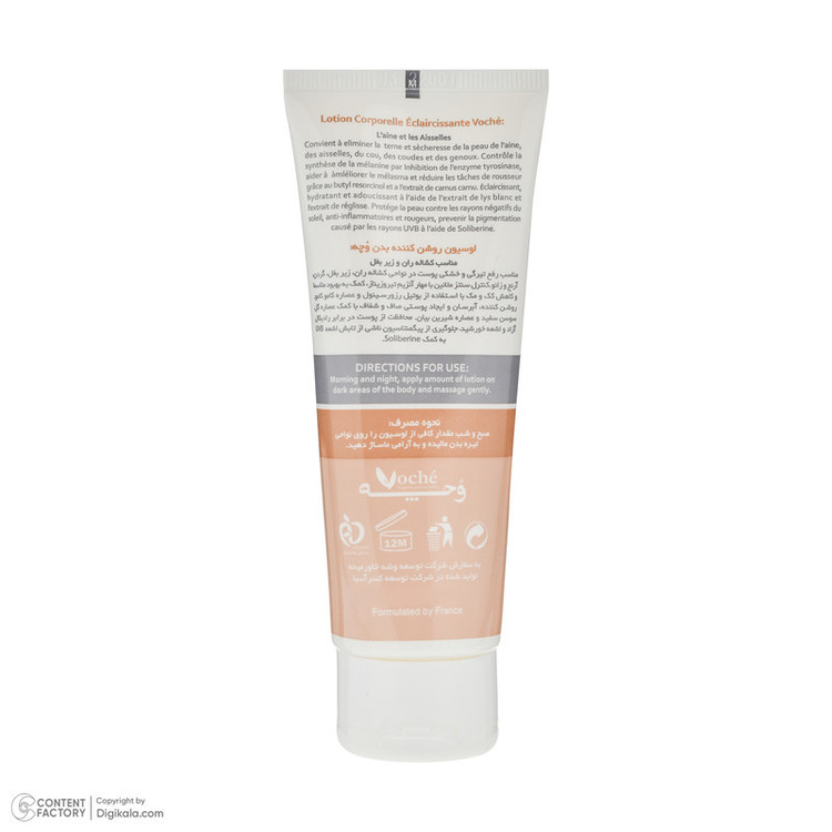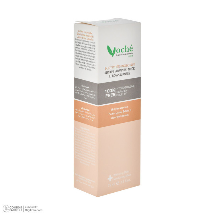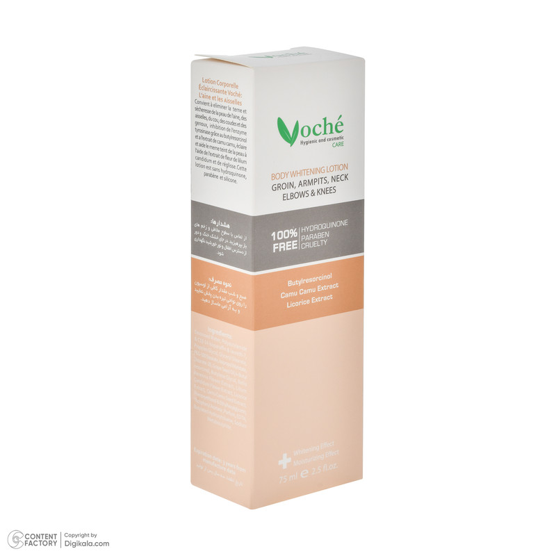 امولسیون روشن کننده بدن وچه مدل VO-01 مناسب انواع پوست حجم 75 میلیلیتر