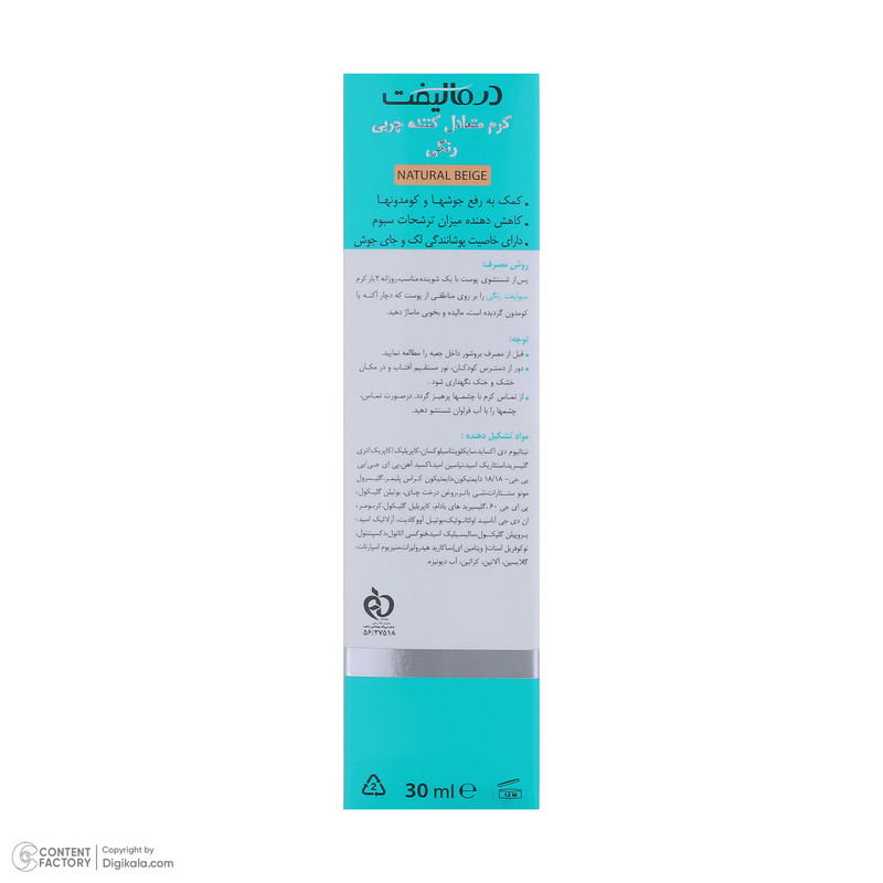 کرم ضد جوش صورت درمالیفت مدل sebolift مناسب پوستهای چرب و آکنهای حجم 30 میلی لیتر