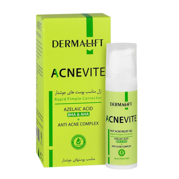 ژل ضد جوش اورژانسی آکنویت درمالیفت، مهارکننده فوری جوش فعال کاهش التهاب و قرمزی با بهرهمندی از نیاسینامید و آزلائیک اسید جلوگیری از بروز مجدد جوشها به کمک اسید سالیسیلیک و زینک جمعکننده منافذ باز پوست با به کارگیری زینک PCA و دکسترین