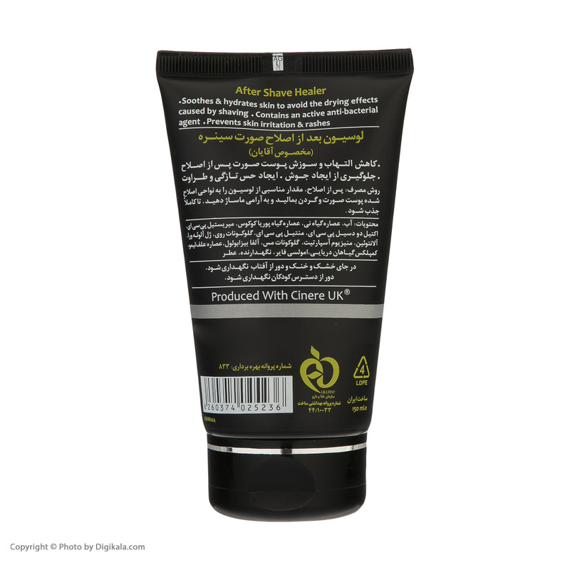لوسیون بعد از اصلاح صورت (مخصوص آقایان): کاهش التهاب و سوزش پوست صورت پس از اصلاح- جلوگیری از ایجاد جوش- ایجاد حس تازگی و طراوت- حاوی مواد آنتی باکتریال