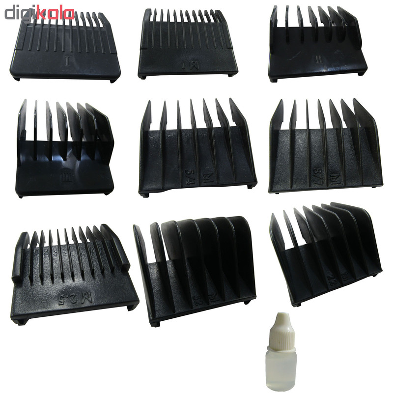 شانه ماشین اصلاح مدل 2020 مجموعه 9عددی،شامل ۹عددشانه باشماره های«1 ـ1بزرگ ـ 2 ـ 2/5 ـ 3 ـ 5/4ـ 8/7 ـ 22 ـ 32»ویک عددروغن مخصوص ماشین اصلاح میباشد.