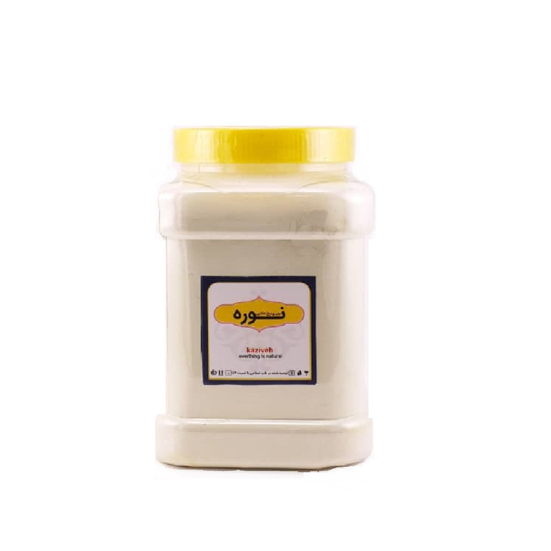 اقلام همراه: بطری پت بهداشتی درب دار حاوی یک کیلو گرم پودر موبر زرنیخ طلایی کازیوه بدون گوگرد قابل استفاده در چند نوبت