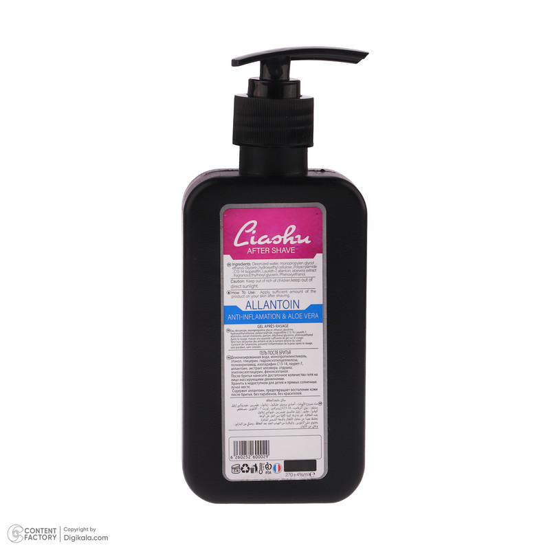 دارای آلانتونین و عصاره آلوئه ورا موثر در حذف باکتری های سطحی پوست ضد عفونی کردن پوست اصلاح شده بستن منافذ پوست کاهش خارش،تورم و قرمزی پس از اصلاح صورت مرطوب سازی و کمک به رشد دوباره پوست