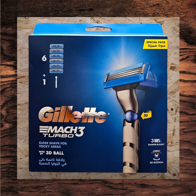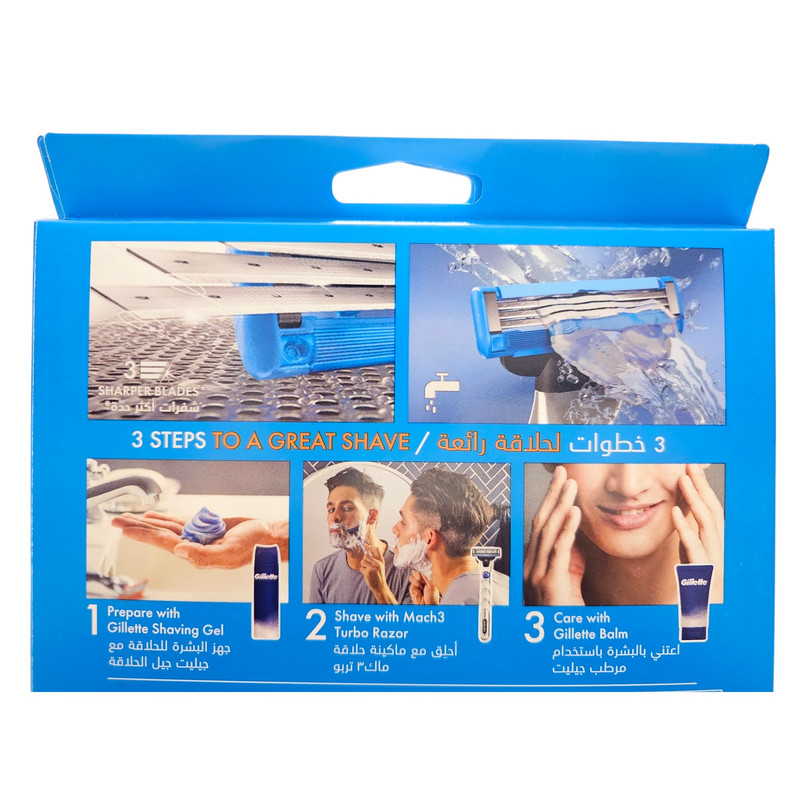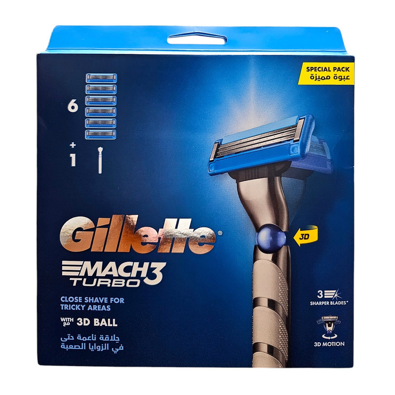 - دارای یک عدد دسته خودتراش Mach3 Turbo 3D - دارای 5 عدد تیغ یدک ( در مجموع 6 عدد تیغ )