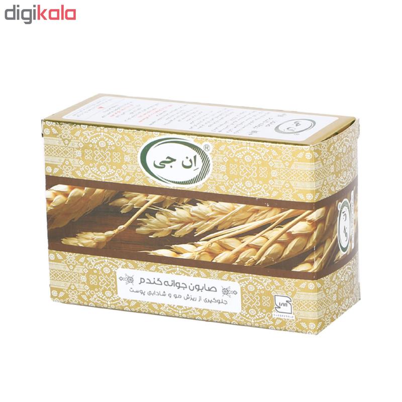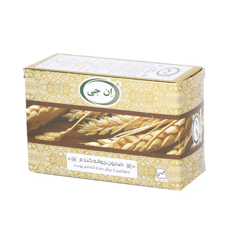 در صابون جوانه گندم ان جی علاوه بر مواد پایه صابونی از عصاره طبیعی جوانه گندم استفاده شده است. جوانه گندم دارای مقدار زیادی آهن، کلسیم، پتاسیم، کربوهیدرات، ویتامین های گروه B و ویتامین E و همچنین ویتامین های A وD وF می باشد. از این رو صابون جوانه گندم ان جی جهت جلوگیری از ریزش موی سر، تقویت موی سر، جلوگیری از چین وچروک پوست به علت داشتن ویتامین E و افزایش لطافت وشادابی پوست بسیار مفید و موثر است.