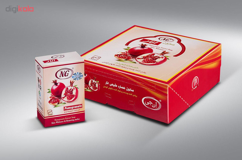 در صابون انار ان جی علاوه بر مواد پایه صابونی از عصاره طبیعی انار و چندین عصاره دیگر استفاده شده است. این صابون، بدون هیچ ماده افزودنی شیمیایی و قلیایی و زائد ، تولید شده است. انار دارای پروتئین، مواد چرب، هیدراتهای کربن، کلسیم، فسفر، آهن سدیم، پتاسیم، رایبوفلاوین، نیاسین، ویتامین سی و تانن می باشد. از تمام گل، برگ، پوست ساقه های سبز و جوان، پوست ریشه، پوست میوه، دانه و سرانجام عصاره و آب انار استفاده درمانی به عمل می آید. صابون انار ان جی روشن کننده و مرطوب کننده پوست بوده و لطافت و شادابی پوست را برای شما به ارمغان می آورد. همچنین این صابون در درمان جوش و لک و ترمیم جای جوش و لک بسیار موثر می باشد.