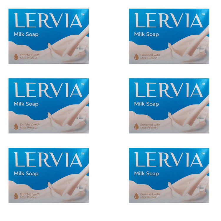 صابون شستشو بدن لرویا مدل شیر مناسب برای پوست معمولی و خشک وزن 90 گرم بسته 6 عددی