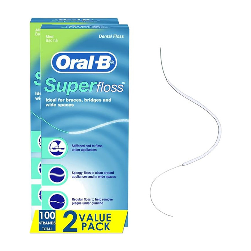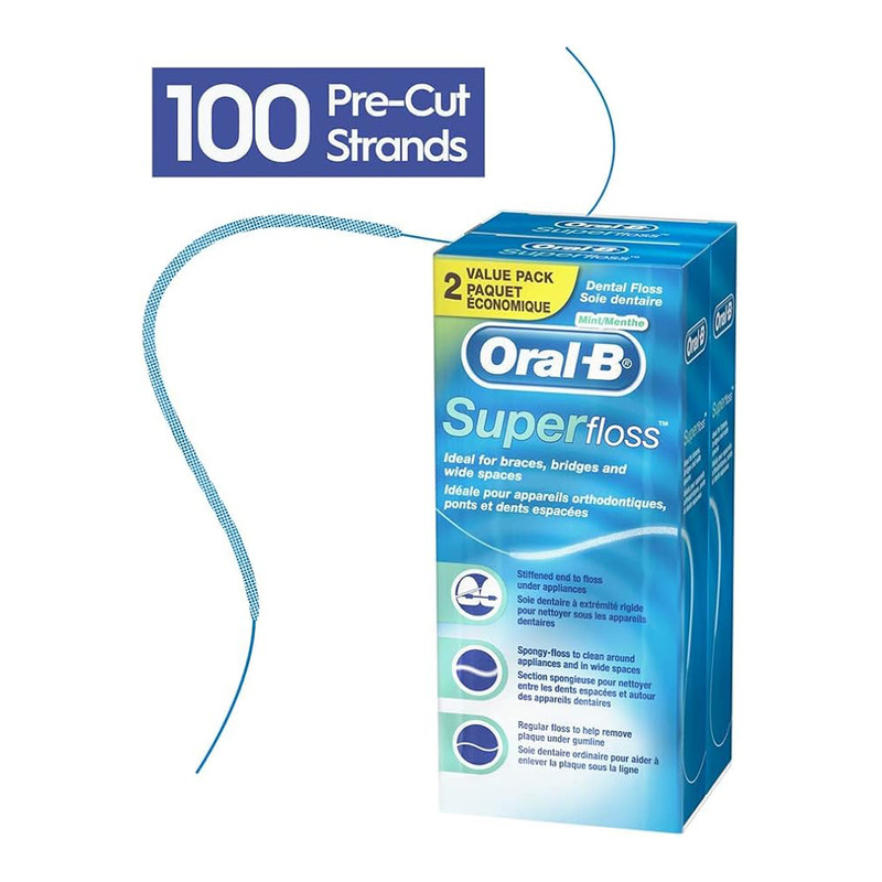 - 50 رشته نخ دندان با طعم نعناع - مناسب جهت تمیز کردن براکتها، بریجها و فضاهای باز بین دندانی - بسیار مقاوم برای استفاده دندانهای ارتودنسی شده