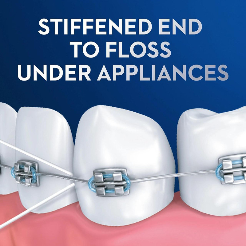 - 50 رشته نخ دندان با طعم نعناع - مناسب جهت تمیز کردن براکتها، بریجها و فضاهای باز بین دندانی - بسیار مقاوم برای استفاده دندانهای ارتودنسی شده