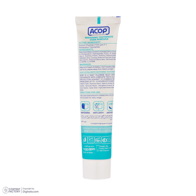 از بین برنده بوی بد دهان - پیشگیری از تشکیل جرم - استحکام مینای دندان - سفید کننده دندان - ضد پوسیدگی دندان - حذف لکه های رنگی - کاهش و حذف پلاک - محافظ سلامت لثه - بدون آسیب به مینای دندان