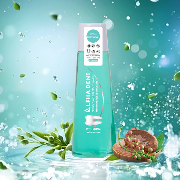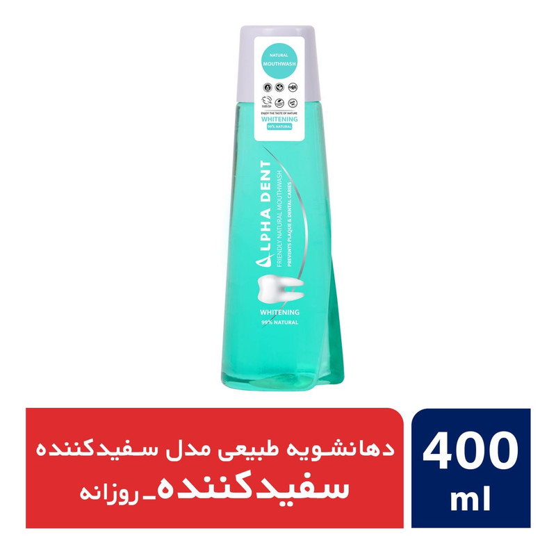دهانشویه طبیعی سفید کننده آلفادنت یک دهانشویه بدون الکل و مناسب مینای دندان است که نه تنها نفس را تازه کرده، بلکه دندانها را نیز سفید میکند. همچنین بواسطه فرمولاسیون موثر، لکه های سطحی را از بین برده و از ایجاد لکههای جدید بر روی دندان جلوگیری میکند.