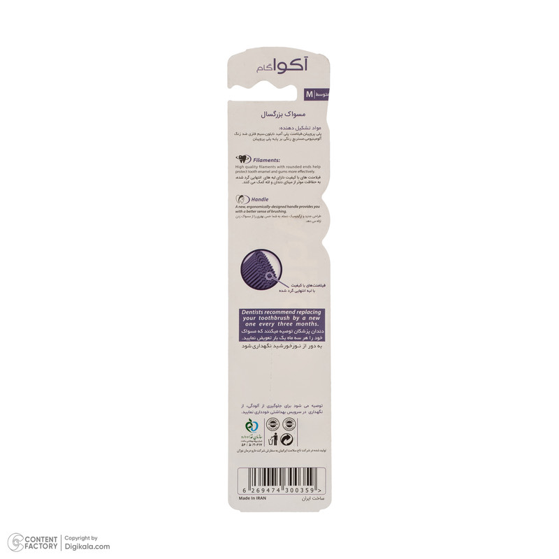 کشور تولیدکنندهایرانمناسب دندانهایهمه دندانهاشماره مجوز56/ظ/20617ویژگیهای محصول بهداشتیضد حساسیتمیزان زبری برسمتوسطنیاز به خمیر دنداندارد